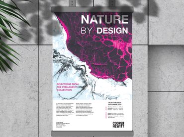 Brief: With a 48 hour time limit, the problem was to design a poster for Cooper Hewitt’s newest exhibit, “Nature By Design.” She chose to photo manipulate images to communicate both science and nature. Working together, these themes proved to be successful in both a cyan and a magenta. She kept the movement flowing through the poster to emphasize scientific nature of design as a whole, and to complete the exhibits true meaning. The abstract and vibrant design effectively off balance the negative space on the bottom of the poster.